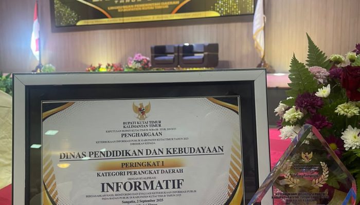SANGATTA – Dinas Pendidikan dan Kebudayaan (Disdikbud) Kutai Timur (Kutim) bersama RSUD Kudungga berhasil meraih peringkat pertama dalam ajang PPID Award 2025 kategori Organisasi Perangkat Daerah (OPD) terbaik.