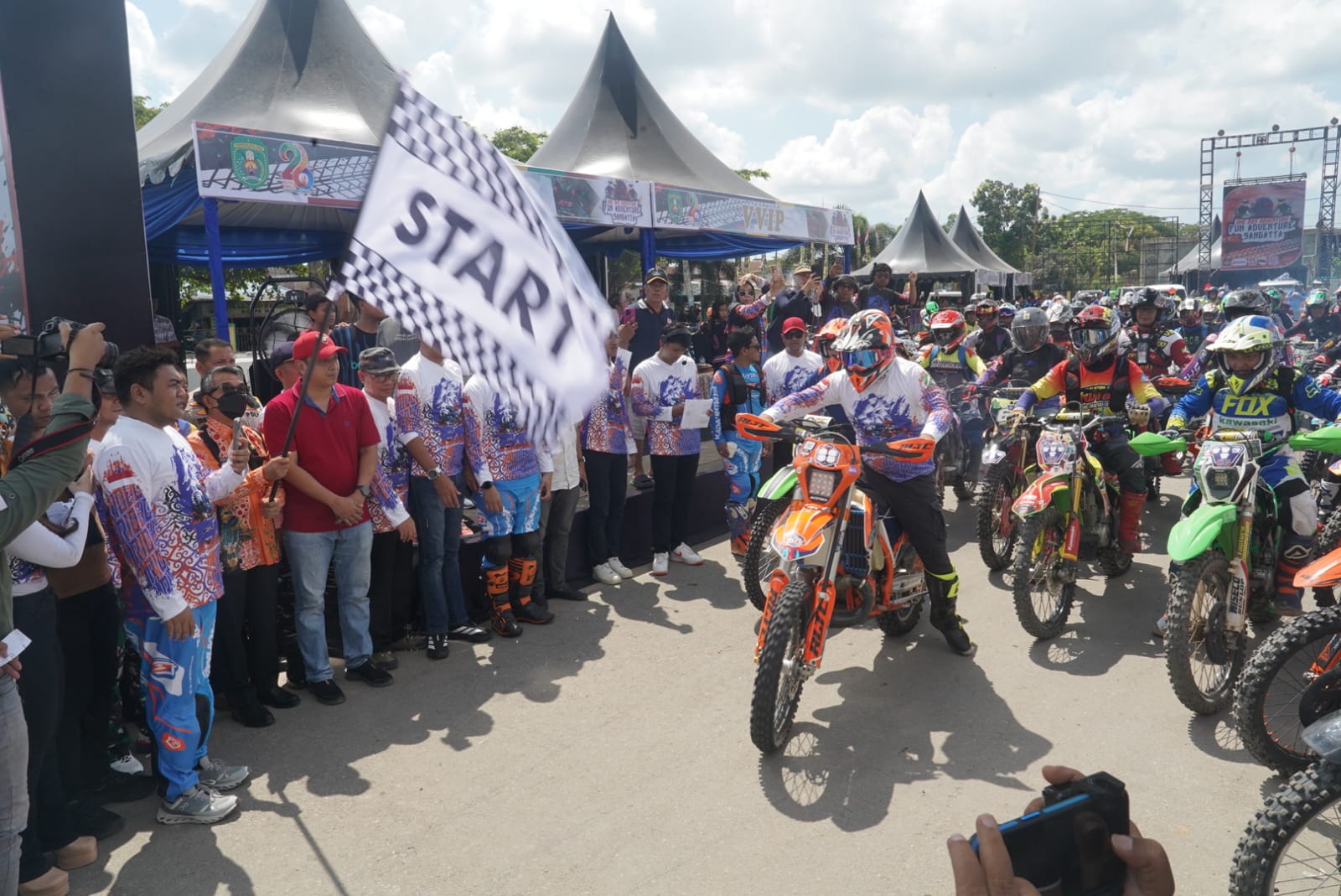 Sangatta – Suasana Polder Ilham Maulana, Sangatta Utara, Kabupaten Kutai Timur, berubah menjadi lautan motor trail pada Sabtu (1/11/2025). Ribuan rider dari berbagai daerah di Indonesia, mulai dari Palopo, Soppeng, Samarinda, Balikpapan, Banjarmasin, hingga Solo, tumpah ruah mengikuti ajang Fun Adventure Sangatta 2025.